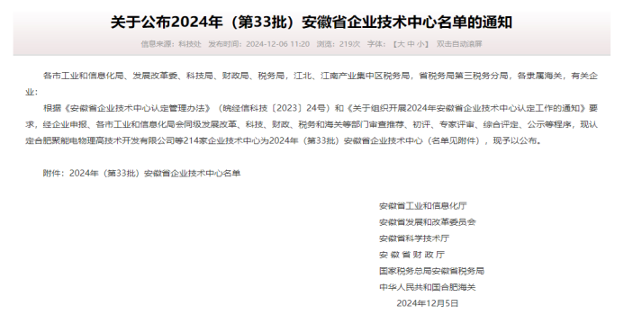 2024年12月5日,由安徽祥龍建設集團有限公司申報、經(jīng)市初審推薦、初評、專家評審和綜合評定等多輪審查環(huán)節(jié),現(xiàn)已公示結束,認定安徽祥龍建設集團有限公司技術中心為2024年(第33批)安徽省企業(yè)技術中心。