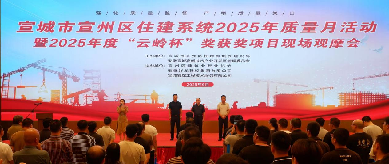 2025年9月26日,由宣城市宣州區(qū)住房和城鄉(xiāng)建設(shè)局、安徽宣城高新技術(shù)產(chǎn)業(yè)開發(fā)區(qū)管理委員會(huì)聯(lián)合主辦的“宣州區(qū)住建系統(tǒng)2025年質(zhì)量月活動(dòng)暨2025年度‘云嶺杯’獎(jiǎng)獲獎(jiǎng)項(xiàng)目現(xiàn)場(chǎng)觀摩會(huì)”在宣城高新技術(shù)產(chǎn)業(yè)開發(fā)區(qū)科技創(chuàng)新中心一期項(xiàng)目圓滿落幕?;顒?dòng)旨在以“質(zhì)量月”為契機(jī),通過(guò)“標(biāo)桿引領(lǐng)、經(jīng)驗(yàn)共享”模式,推動(dòng)全區(qū)建筑業(yè)質(zhì)量管控水平整體提升,助力“品質(zhì)好房子 匠心安徽造”品牌建設(shè)。